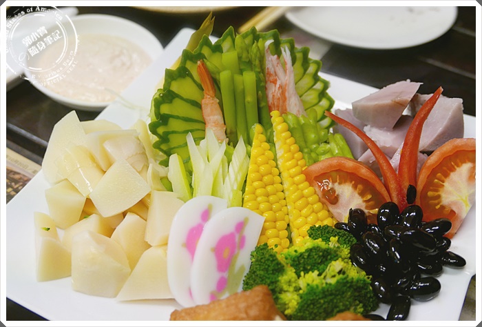 超愛吃沙拉的寶妹,一看到他的擺盤差點沒暈過去,也太豐盛了吧~~~我記得這樣的份量配菜要是在日本料理店用餐至少也要250吧??數一數大概是有超過了15種以上的配菜,而且還附贈加入了蝦卵的美乃滋沙拉醬,一整個口感十足阿 |
