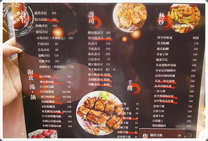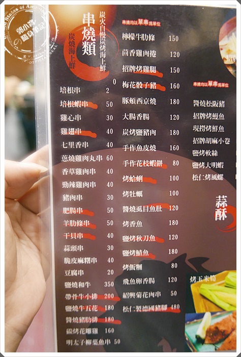 | 超大張的MENU,上面有配一些小圖片,種類超級多,絕對不會讓你只是吃串燒這麼簡單啦 |