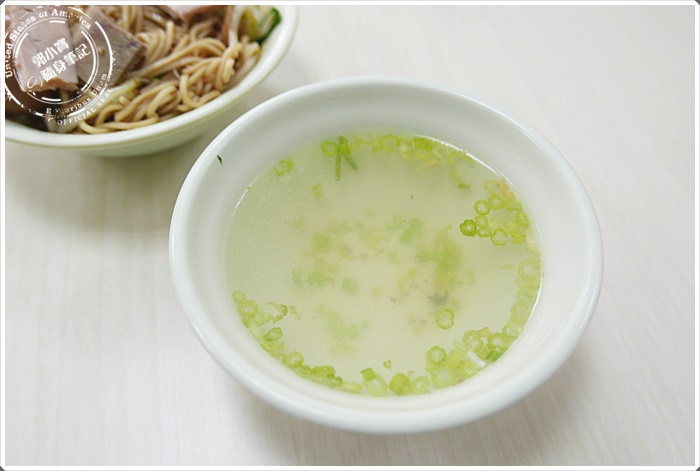 | 大骨熬的清湯配上超多量的芹菜末簡直就是超級鮮甜!!可以說是排名衝上寶妹鍾愛麵店清湯的排行榜阿,為了這碗湯,寶妹可是毫不猶豫地喝了滿滿的兩碗阿~ |