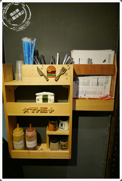 | 因為空間有限,將調味料餐具供應站跟菜單釘在牆上,利用空間的完美設計,也顯現出設計的小巧思!寶妹爬文後才知道原來原始開幕時室內裝潢不是這樣子的,現在將廚房往內推,多了許多的室內營業空間。 |