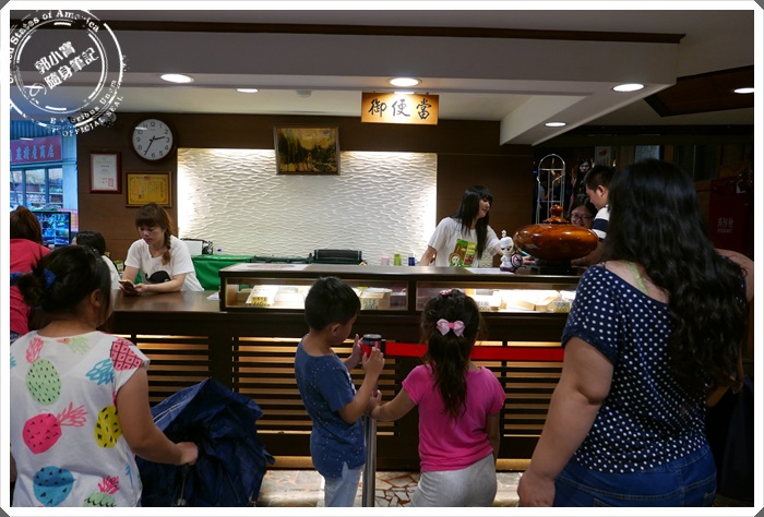 | 來到奮起湖飯店的櫃檯旁邊,上面用檜木的牌子寫著御便當,相信很多人都有吃過小七超商的奮起湖便當版本,等等就會看到一模一樣的新鮮版本了!!寶妹個人對於奮起湖一直有著不同的情感,幾乎每一年都可以來一趟奮起湖,熟識到這地區的大街小巷古道都算是非常的熟悉,其實當地人並不愛吃奮起湖大飯店的便當,當地人比較偏好吃老街盡頭的"雅湖便當",寶妹當然也吃過,可是多年吃下來個人還是喜歡奮起湖飯店的版本(個人偏好在此不做比較),既然要當觀光客,每一次來不吃一下奮起湖便當總是覺得全身不舒服呢^^ |