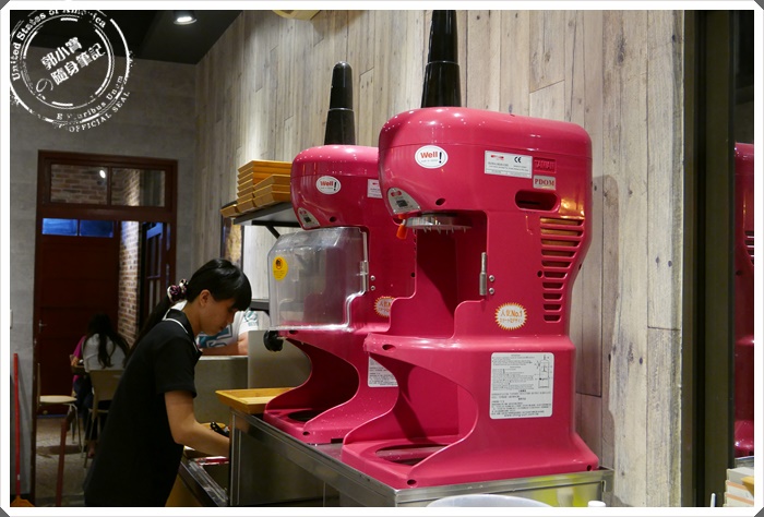 | 店家就是使用這台機器削出好吃的雪花冰山唷~~~還是桃紅的在店裡非常的醒目俏皮。 |