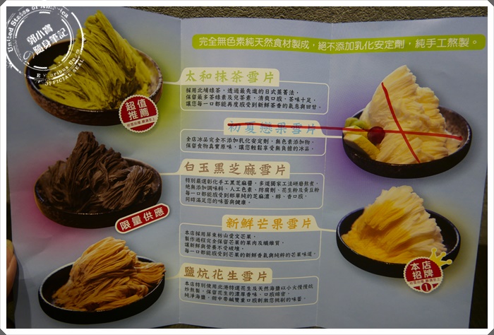 | 牆上也有其他主打口味的冰品介紹,寶妹下一次要來挑戰黑芝麻,爬一下黑芝麻的雪花山 |