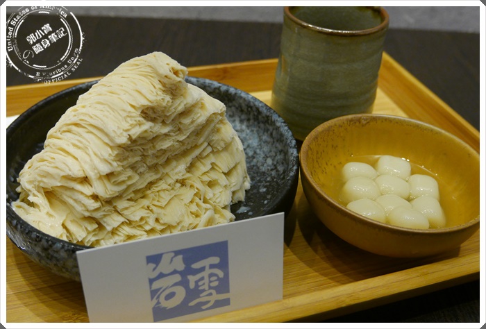 | 來了來了~~~整齊劃一的雪花冰山,好想爬上去啊@@原本旁邊的配料原始是配上波霸珍珠,寶妹則是要求換成了白玉湯圓,整份套餐還有配上一杯熱茶讓你緩和甜甜的嘴~~ |