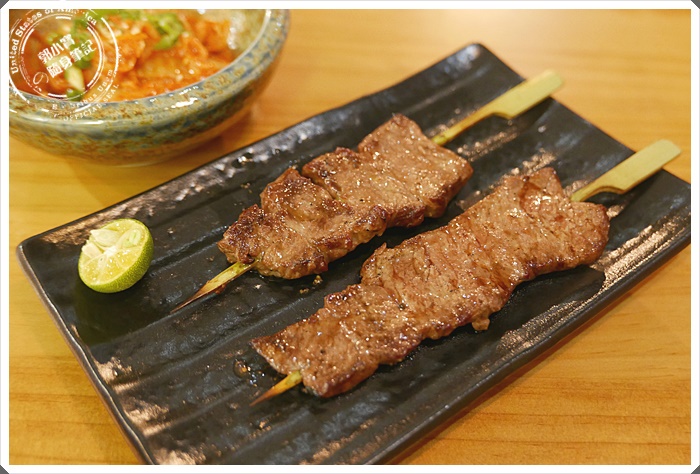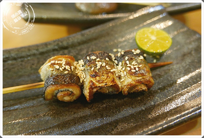 | 後來姊妹又多加點了一份串捲秋刀魚,他一直以為是整隻的秋刀魚,沒想到店家細心的把邱到魚除了刺,還捲了起來,烤過之後因為造型口感又更上一層,而且秋刀魚超好吃,是一道姊妹真心推薦的海鮮串燒 |