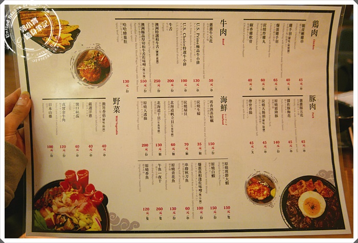 | 菜單有兩面分為雞豬牛肉以及海鮮,品項雖不多但都來自於老闆的原創口感 |