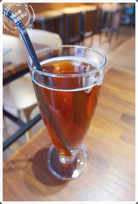 | 寶妹點的魚池紅玉紅茶,天氣太熱實在不想喝熱的= =,這個真的等的有些久,想必是現泡紅茶在冰鎮,不會為了趕著給客人還加入一堆冰塊來沖淡茶味,一喝也知道是好茶葉來沖泡,濃濃的紅茶香加上台灣的茶香味~~雖然單價略高的茶飲,不過真心超值,好物是值得等待的。 |