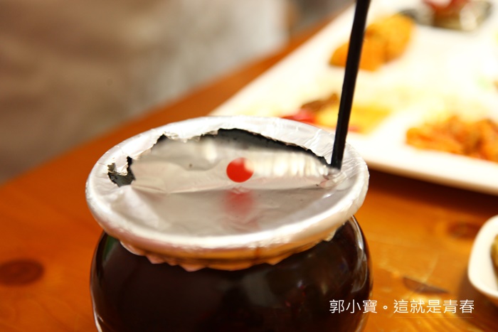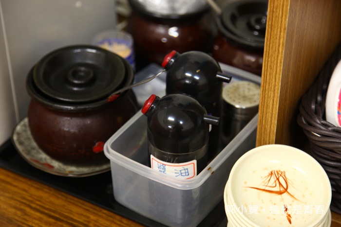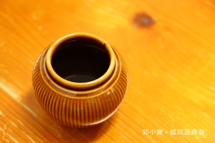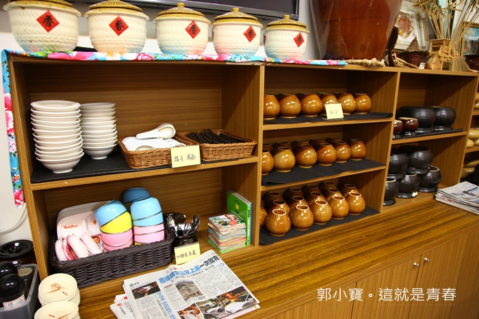 | 店內的餐具是自取的,餐具旁邊的一個個小陶罐讓我滿感興趣的,仔細一看原來是水杯,用陶罐當水杯喝好有FU~ |