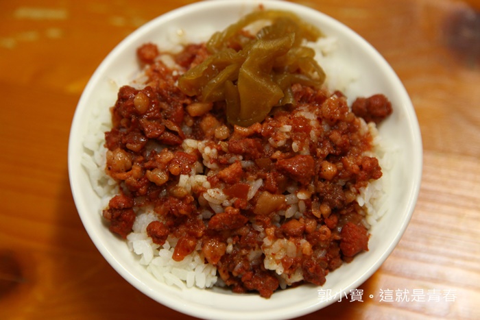 這肉燥飯跟外面吃到的口味完全不一樣,選用的肉燥肥瘦比例滿均勻的,取代醬油的鹹香的是紅麴的甜味,吃起來有點顛覆了傳統肉燥飯的味道,但是還滿好吃的! |