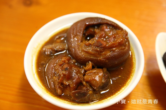 | 必須特別推薦一下他們家的豬腳,真的事太厲害了,輕輕夾起就整個骨肉分離,而且真的像小時候的童謠唱的一樣,入口化口以外非常的黏嘴,整個醬香都魯進了豬腳裡面,給我十隻我都可以吃完他,超好吃的!! |