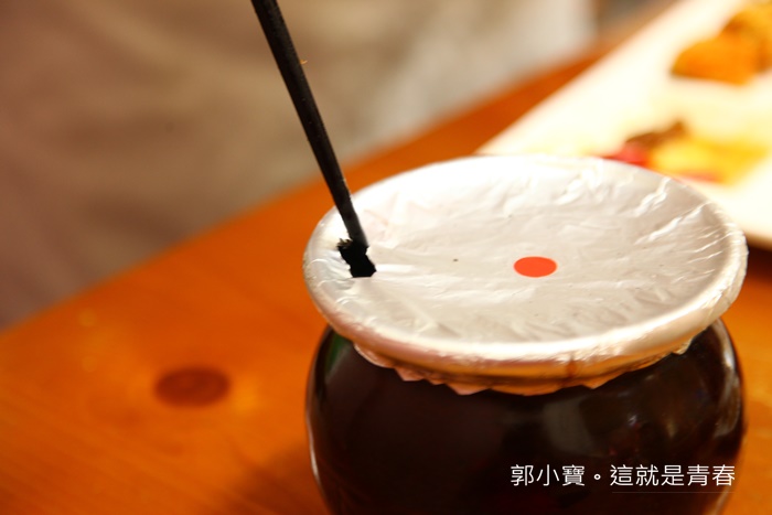 | 工作人員教我們用筷子將鋁箔紙周圍畫上一圈,因為陶罐非常的燙,所以一上桌的時候要小心免得燙傷,如果有帶小朋友來吃的話可能要更加小心一點。 |