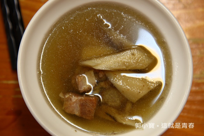 | 玉山薊跟子排就是一個很妙的組合,玉山薊本身就是國寶級的藥草,煨煮後香氣整個大大的提升,每一種湯品我都超喜歡超有特色的,且默默的喝完一碗會想再點一碗繼續喝XD |