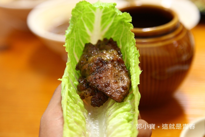 | 店家推薦要夾著生菜一起食用,但是不管加著還是單吃我都覺得沒有紅酒燉子牌來的厲害。 |