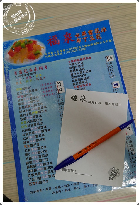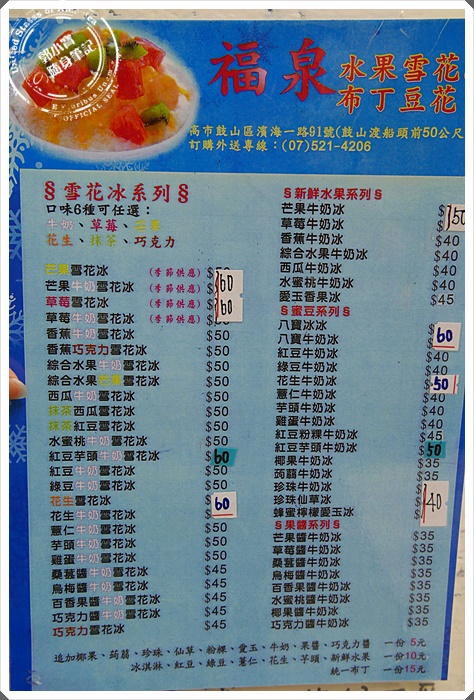 | 門口的扛棒就列有超熱賣的四項冰品,寶妹超愛大冬天來吃草莓牛奶雪花冰,真的不要小看福泉雪花冰,這邊可是連冬天都超多客人吃冰阿~~~~ |