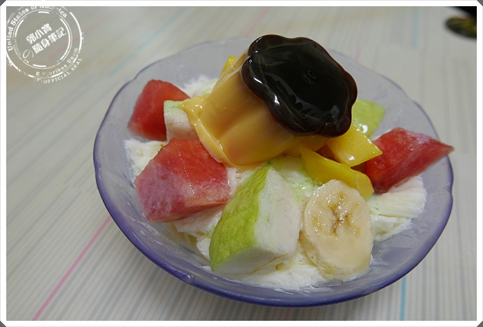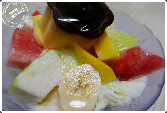 | 寶妹就是個沒個性沒創意的孩子,搞了半天只弄出了綜合水果雪花冰加布丁$65~~~哈哈!但這個搭配實在是我的愛~~ |