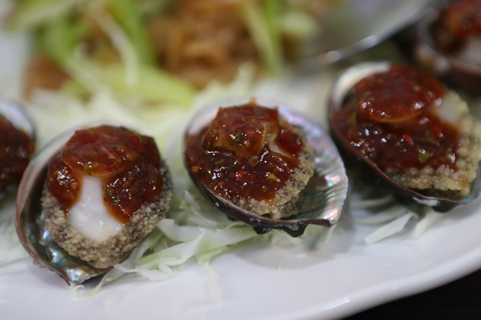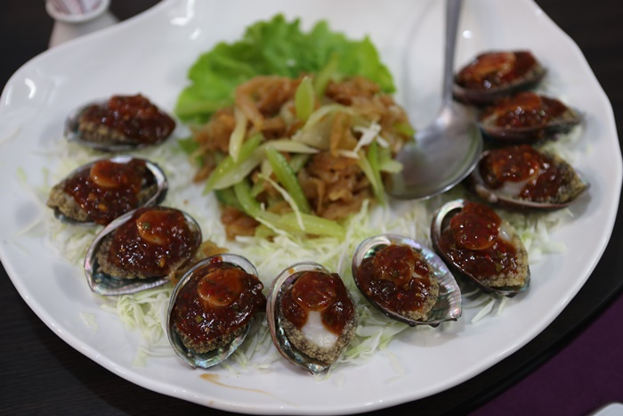 | 典型的擺盤菜,鮑魚雖然沒有很大顆,但是入口的咬勁嫩脆彈牙,上面的調降不會膩口,搭配鮑魚的彈牙口感非常不賴。 |