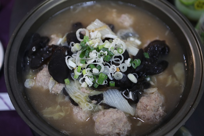 | 獅子頭滿道地的,一口咬下有肉汁且納鬆散的肉末帶點咬勁,鍋裡面的粉絲跟湯品淋在飯上還可以多吃好幾碗。 |