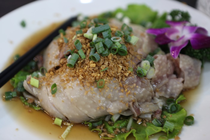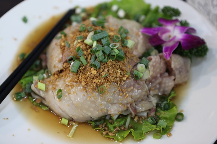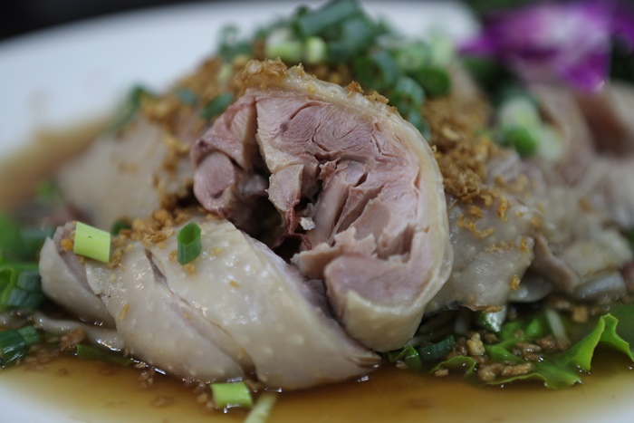 | 蝦油雞這是我第一次聽到也是第一次看到,蝦油雞查了一下是杭州道地的菜色,且幾乎台灣沒有甚麼滋味,當下就讓我超有興趣的,趕快夾上了一塊雞肉入口,雞肉雖然嫩口但是還是吃的到雞肉的纖維口感,本以為蝦油的感覺會是蝦醬的感覺,其實就是底下的蝦油露,上面撒上像是紅蔥頭的碎末,吃起來倒也迷人,蝦油的味道但了一些,整體上相當的特別。 |