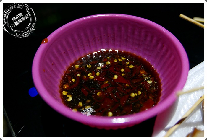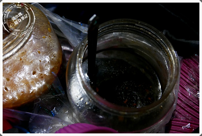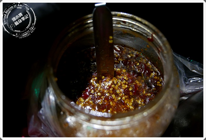 | 神秘的辣醬,光是這辣底的沾醬就已經讓愛吃辣的寶妹辣的呼呼叫了~~但是醬料實在是太香了,每每都是讓寶妹一邊喊著辣一邊去沾著吃 |