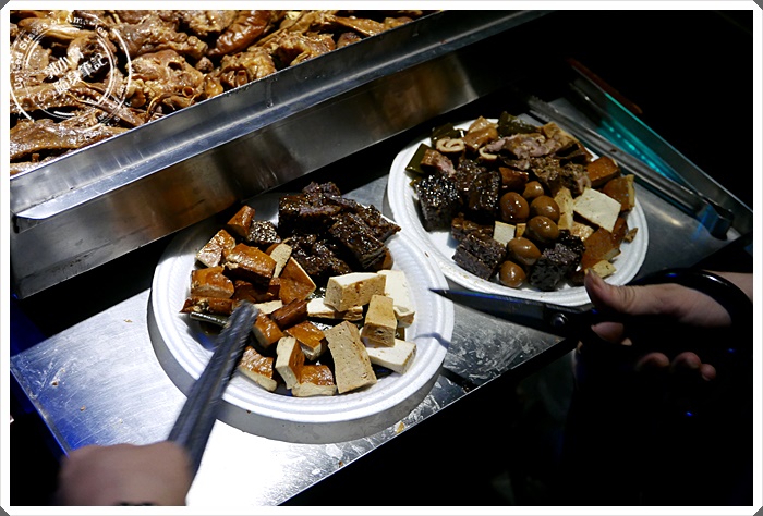 | 挑選過後就會幫你剪成一口一口地再幫你上桌~~~特製的鐵盒真的很威,最上面會有一個蓋子,然後是雙層的設計,客人們就可以自己挑選要吃的滷味~~實在是厲害的外送工具! |