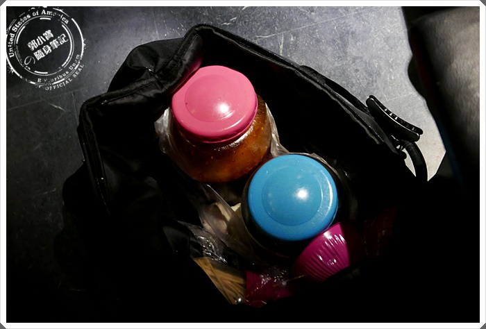 | 除了提著鐵盒以外,還背了一個大包包進來,裡面就是讓人超~~~及銷魂的醬汁以及辣醬阿 |