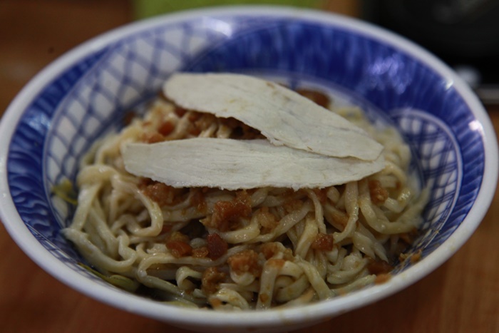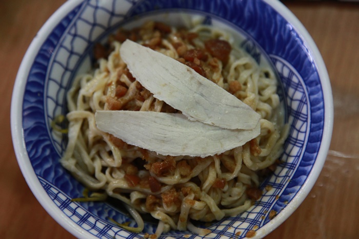 | 光看賣相就是濃濃的古早味風情,特有的台南意麵加上油蔥還有兩片瘦肉,我小時候吃的乾麵都是這樣的盛盤,好懷念! |