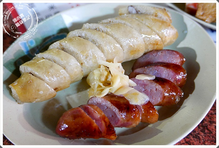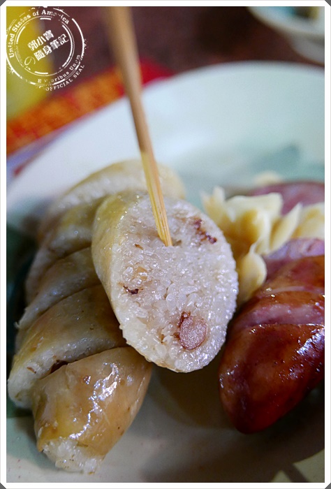 | 他們的大腸是比較乾比較紮實的,糯米比較吃得出顆粒感,而香腸是烤起來油花多,可以說搭乘一組還真搭配! |