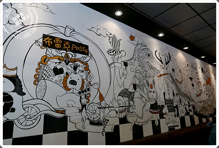 | 最特別的我想就是這滿滿一片牆面上的手繪卡通了,覺得很有漫畫風格也很有趣 |