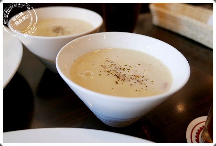 | 玉米濃湯倒是讓寶妹非常推薦,其實湯的份量不少,湯也非常濃郁好喝,就連玉米粒都不少~~ |
