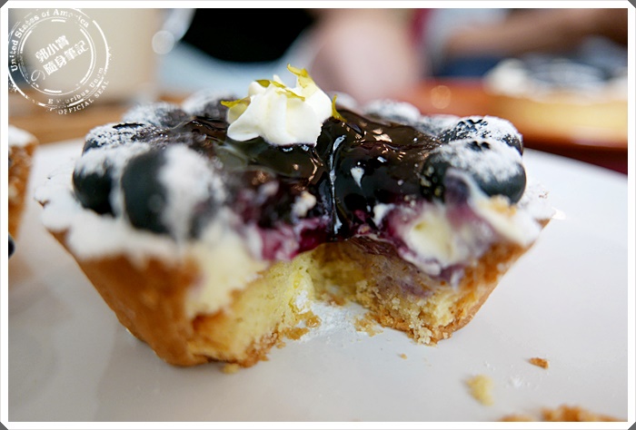 | 一點點的卡士達加上奶油趁在藍莓之下,厚實又有份量的派皮讓人很享受阿 |