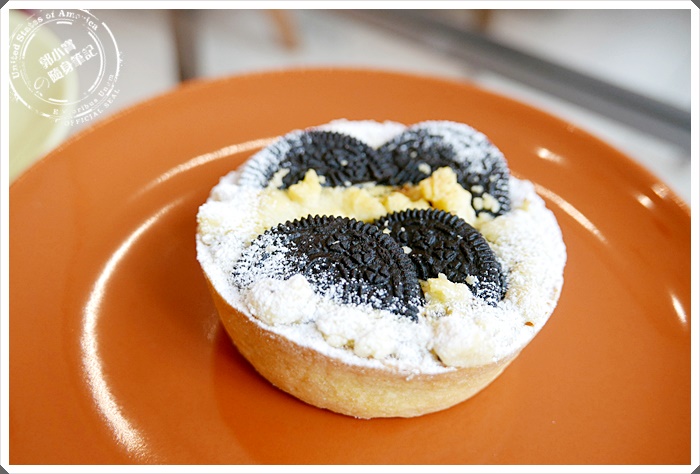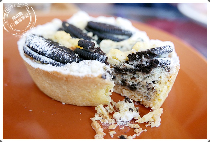 | OREO起士$110,因為餅乾在上面的關係比較不好切一些,大家分享會比較賣相差哈哈,這個口味比起鑽石藍莓甜了許多,派皮口感也比較硬。 |