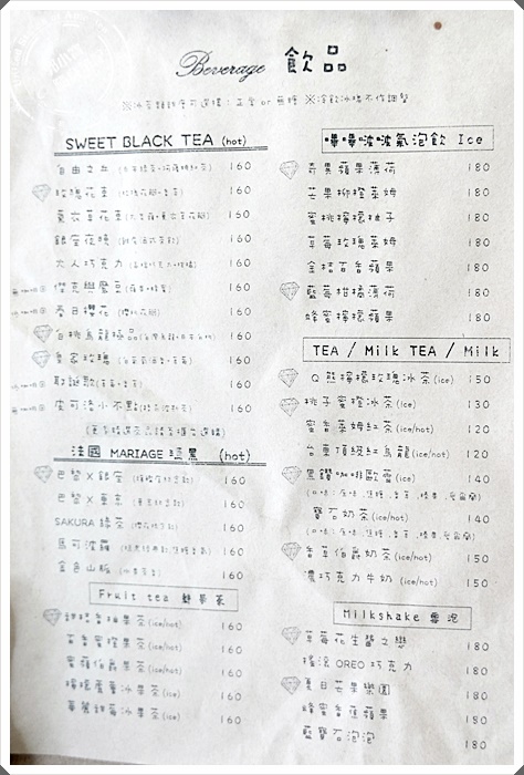 | 飲品單,其實他們的飲料單品真的有些偏貴了,但是後來寶妹點到了厲害的氣泡飲唷~~等等介紹^^ |