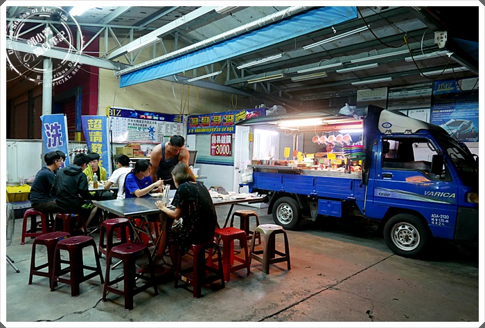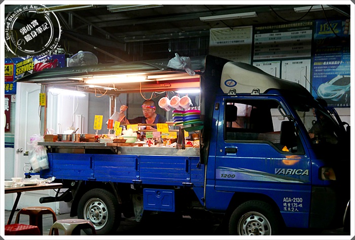 | 小發財車開進來停就直接是攤位了,在洗車場打烊後又賦予了這空地一個新生命,在配上簡單的桌椅跟椅子,小小生意就這樣漫開來,來吃的是許多年輕人跟學生成群結隊的來吃,也有許多老客人老饕 |