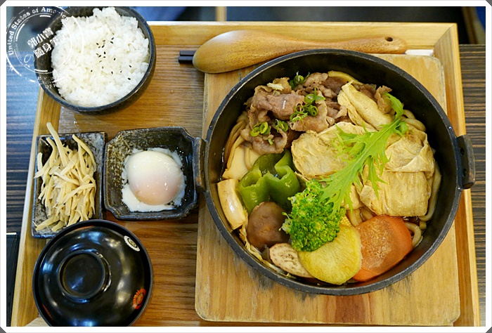 | 今天有兩位朋友都同時點了牛肉壽喜鍋,看來男生吃肉的慾望還是不減阿,大中午的依然堅持要吃鍋,一樣也有配上白飯還有小菜以及湯品,還多了一顆溫泉蛋唷^^ |
