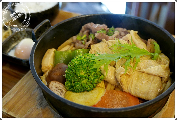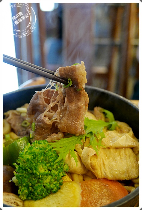 | 除了肉片之外煮物的部分也特別多,有豆皮、蔬菜、豆腐最底下還有附上一些烏龍麵,麵吸附了湯汁整超好吃的,兩位朋友都是第一次來吃整個是大為稱讚呢~~ |