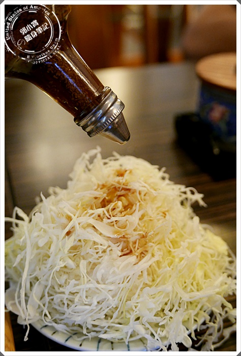 | 今天因為人比較多就直接請服務生把大家的高麗菜絲用成一盤就好,高麗菜絲是可以一直無限供應的,寶妹跟阿爸每次都是衝著高麗菜絲來的XDDD可以一直加一直加,在配上日式和風醬,酸酸的好開味啊。 |