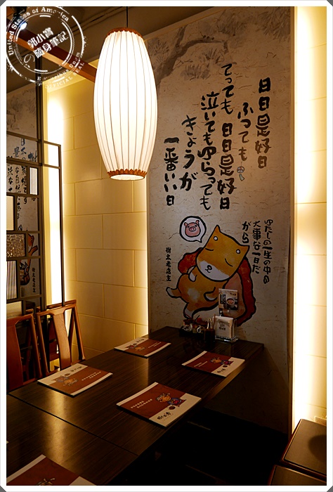 | 終於可以進場了,喜歡它獨立式的空間,牆上還有可愛的繪圖,配上日式的燈具讓整體吃飯起分滿點~ |