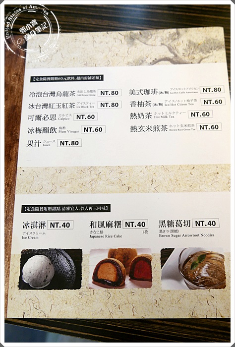 | 每一樣定食都是套餐的,內含60元的飲料以及甜點三選一 |