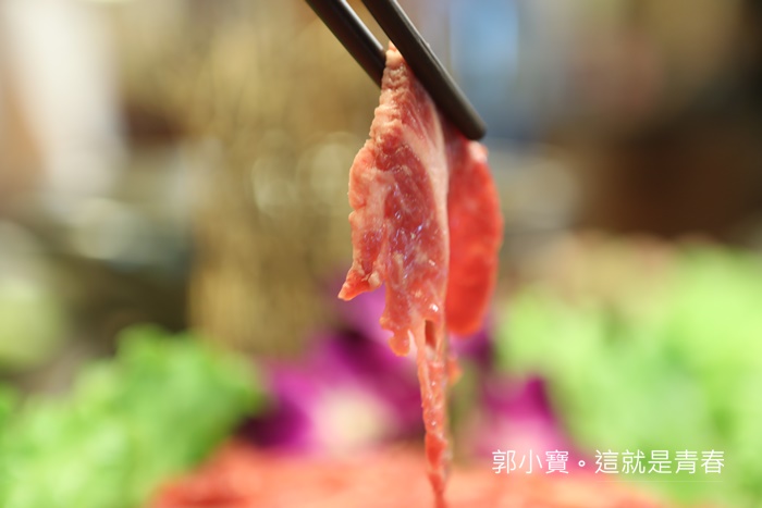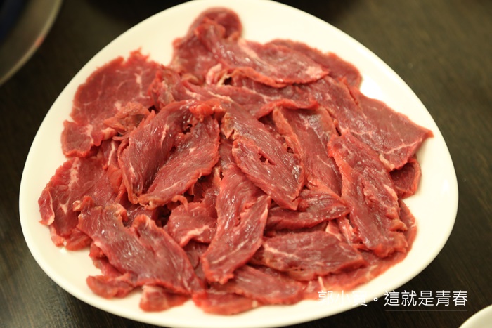 | 接下來就是涮溫體牛肉了,看看它們家的溫體牛肉有多厚,真的超厚的一大片,光用看的爽度就破表了,喜歡吃溫體牛肉沙茶爐的朋友真的要來朝聖一下,真的太過癮了。 |