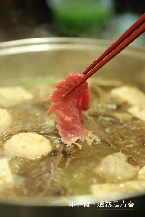 | 下鍋涮個幾秒後就可以起鍋了,因為厚片的關係,所以涮了一下裡面的肉完全是呈現粉紅色的,視覺上就足夠讓人口水直流了。 |
