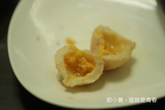 | 一口咬下會爆漿的鱈魚子丸,相當特別,但是驚艷度卻沒有前面其他丸子類那麼特別。 |