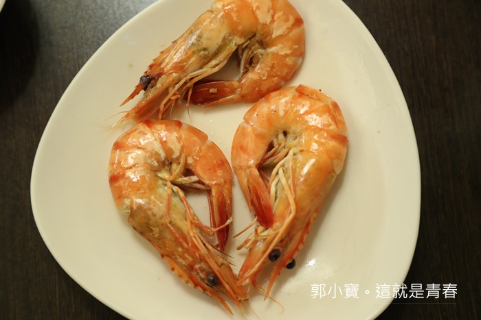 | 他們家的草蝦品質相當的好,口感非常彈牙,蝦殼卿卿一剝就剝下來了,瞬間六隻就被吃完了,後來還加點了一份烏骨雞,一整個海陸大餐吃到爽! |