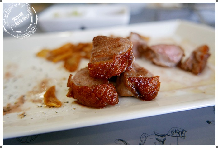 | 放大仔細看鴨胸還帶著鴨皮,吃起來酥酥的就好像烤乳豬的外皮一樣香酥,實在是CP值大好阿,真的是選對了(囂張) |
