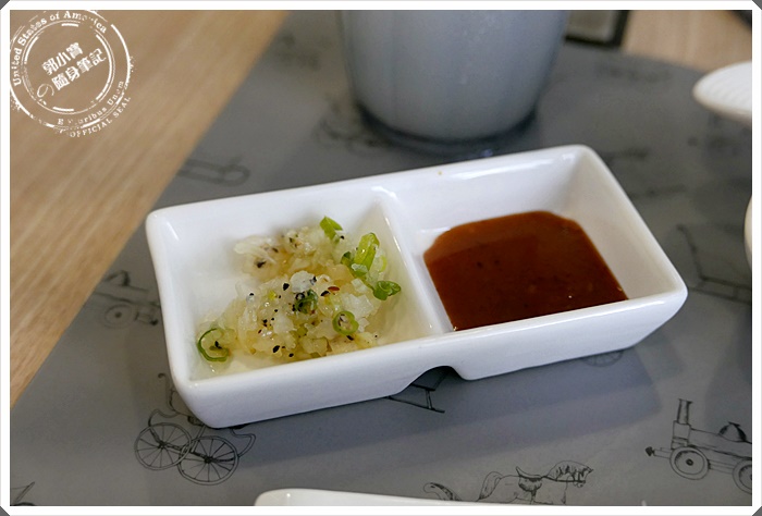 | 特別介紹一下每一位客人都有的醬料,左邊是洋蔥加上些許青蔥,一開始以為是單純洋蔥,沒想到加上了大量的檸檬汁,原來檸檬跟洋蔥這麼搭配,讓人一口接一口,寶妹還加了第二次,至於右邊的醬汁是使用味增調和的味增醬,跟每一種肉品搭配起來都很適合,寶妹就很喜歡沾著味增醬吃鴨胸! |