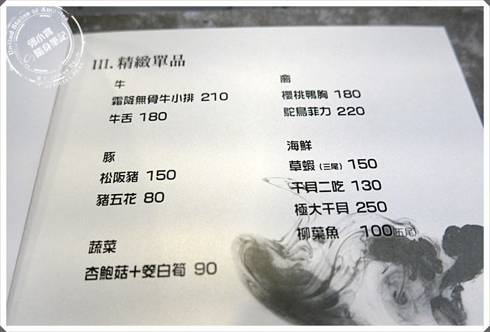 | 都是以套餐式的方式來呈現,仔細看其實價格並不貴,大約是一般外頭鐵板燒在貴上一些些!說起來還比吃王品系列的套餐便宜許多XDDDD主餐的部分提供了八種不同的肉品主食,滿足了許多客人不同的喜好 |