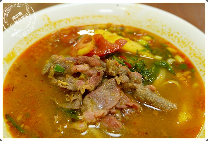 | 將將~~~今天點的是牛肉酸辣河粉$100,也有一般的牛肉河粉可以選擇,今天就是想要重口味,來個酸辣湯底,原本一直以為客人超多完全客滿的情況下,寶妹可能要等上很久,沒想到十分鐘內就看見熱騰騰的河粉上桌,外頭的工作人員也超多的,乳此才能應付這麼多的客人吧!裏頭已經加進了九層塔,湯頭裡還有甜鳳梨來提味,口味上還是調整到了台灣人接受的程度,但還是盡量遵循了原來的越式風貌,寶妹嘗了一口後決店再繼續把剛剛準備好的檸檬汁給倒進去加酸,越式料理其實對身體很好,檸檬能夠幫助我們調整酸性體質唷! |