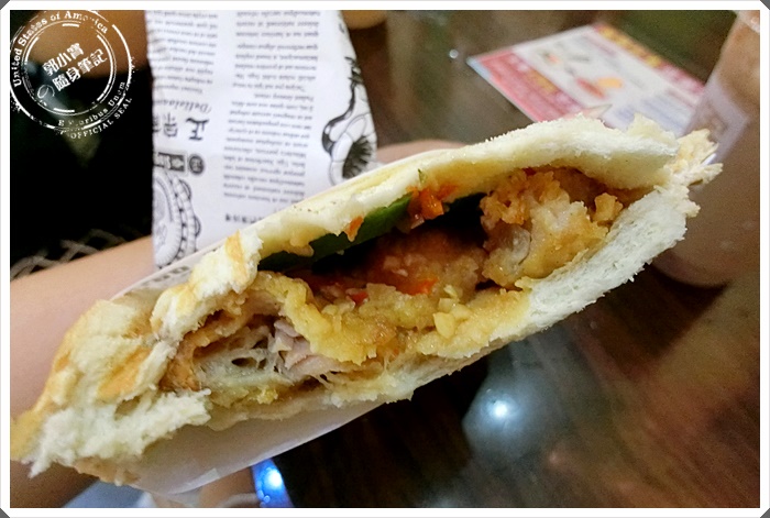 | 雞腿肉滿嫩的也很大塊,偶爾還可以吃到酥酥的雞腿皮,醬料也下得剛剛好,部會讓吐司變的軟軟的,裡頭還配上小黃瓜讓整體吐司口味變得不會那麼的油膩,一咬下去就覺得非常清爽可口,這口味滿對我的口味的^^ |