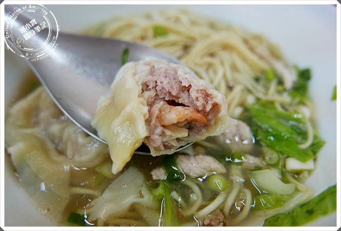 | 飽滿的餛飩當中還藏有一隻小小蝦仁,蝦仁很新鮮唷!餛飩肉餡本身味道很夠也很紮實,新鮮的豬肉調味過後更顯的好吃多汁,配上湯底清爽的湯頭,好吃銷魂難怪這麼多人排隊。 |