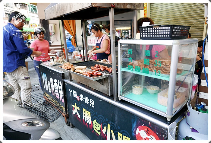 | 一個小攤下午時段就有四個工作人員實在是很威,大家早已培養了多年的默契,一人負責烤黑輪另一人則不停的將香腸給補上烤爐反覆的烤熟端至客人桌上,寫到這邊寶妹又想吃烤黑輪了XDD |