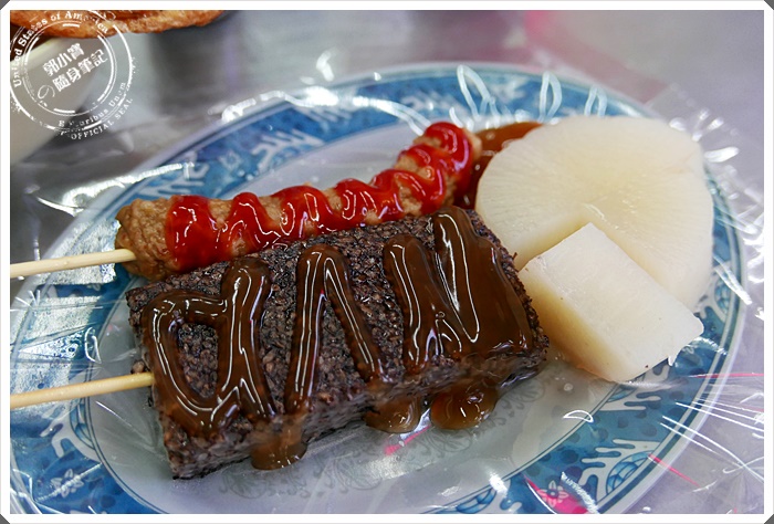 | 幼稚鬼寶妹總是很愛加很多醬料,米血必加醬油膏、黑輪必加古早味番茄醬哈哈!話說米血很好吃,很有味道又軟心綿密感重,黑輪不會過煮不會軟爛,非常緊實口感好。 |